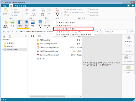 리본 메뉴 또는 도구 모음을 오른쪽 클릭 후 [도구 모음 사용자 지정]을 선택합니다.