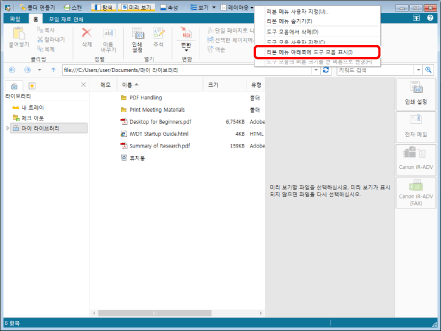 리본 메뉴 또는 도구 모음을 오른쪽 클릭 후 [리본 메뉴 위쪽에 도구 모음 표시]을 선택합니다.