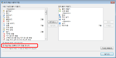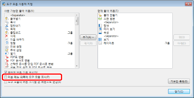 [도구 모음 사용자 지정] 대화 상자가 표시됩니다.