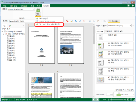 IWB 문서를 사용 중인 경우 팩스 송신 시 IWB 문서에 저장된 인쇄 설정이 사용됩니다. 인쇄 설정에 대한 자세한 내용은 다음을 참조하십시오.