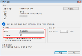 [범위]의 입력 순서가 송신 순서는 아닙니다. "1,2" 또는 "2,1"을 입력할 경우에도 페이지는 "1,2" 순서로 송신됩니다.