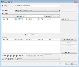 다음 작업 중 하나를 수행하는 경우 [팩스 송신 설정] 대화 상자가 표시됩니다. 이 경우 8단계로 이동합니다.