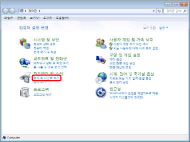 Windows Vista을 사용하는 경우 [하드웨어 및 소리]에서 [프린터]을 선택합니다.