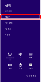 [데스크톱] 화면의 참 메뉴에서 [설정] > [제어판]를 선택합니다.