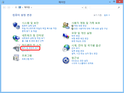 [하드웨어 및 소리]에서 [장치 및 프린터 보기]을 선택합니다.