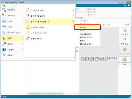 (네트워크 프린터와 같은) 프린터 유형에 따라 끌어서 놓기로 프린터 출력 버튼을 등록하지 못할 수도 있습니다. 이 경우 고급 설정을 사용하여 프린터 출력 버튼을 등록합니다. 고급 설정 구성에 대한 자세한 내용은 다음을 참조하십시오.