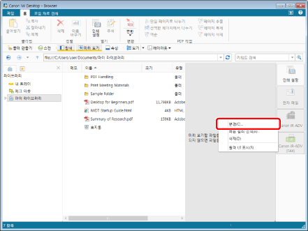 을 클릭하고 [변경]을 선택하여 같은 작업을 수행할 수도 있습니다. 리본 메뉴 또는 도구 모음에 출력 버튼이 표시되지 않는 경우 다음을 참조하여 표시할 수 있습니다. |