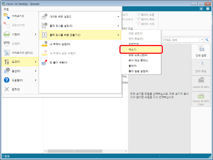출력 표시줄에 등록된 팩스 출력 버튼이 리본 메뉴 또는 도구 모음에도 표시됩니다. 표시에 대한 내용은 다음을 참조하십시오.