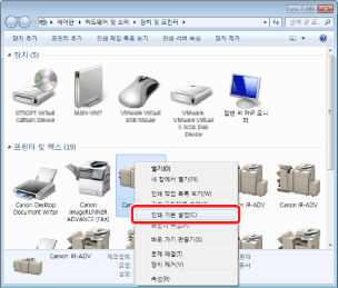 [장치 및 프린터] 화면과 [프린터] 화면 표시에 대한 정보는 다음을 참조하십시오.