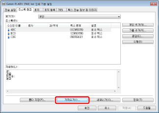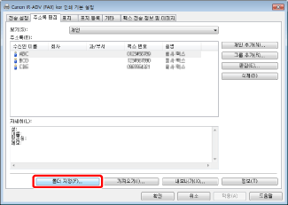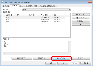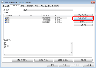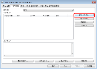 등록된 개인 대상 정보를 편집할 수 있습니다. 자세한 내용은 팩스 드라이버 인쇄 설정 화면의 오른쪽 하단에 있는 [도움말]을 클릭하여 "도움말"을 참조하십시오.