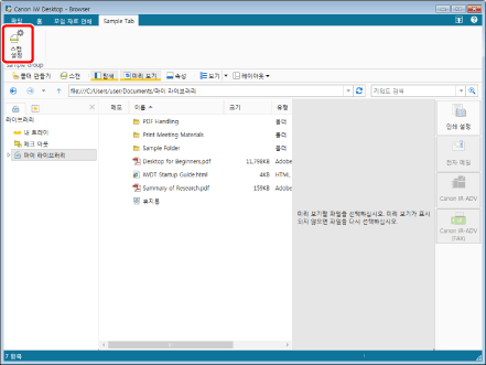 Desktop Browser 화면에서 스캔 설정을 구성하고 스캔을 수행하여 종이 문서를 스캔한 결과를 라이브러리의 폴더로 가져올 수 있습니다.