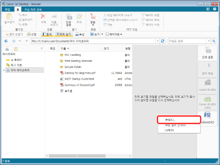 을 클릭하고 [변경]을 선택하여 같은 작업을 수행할 수도 있습니다. 리본 메뉴 또는 도구 모음에 출력 버튼이 표시되지 않는 경우 다음을 참조하여 표시할 수 있습니다. |