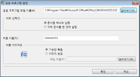 [응용 프로그램 파일 이름]에 외부 응용 프로그램의 실행 파일 경로를 지정하려면 259자 이내로 입력하십시오. 등록된 응용 프로그램의 실행 파일에 문자를 사용할 수 있습니다.