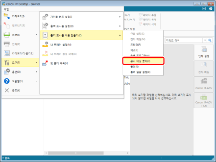 출력 표시줄에 등록된 문서 대상 폴더가 리본 메뉴 또는 도구 모음에도 표시됩니다. 표시에 대한 내용은 다음을 참조하십시오.