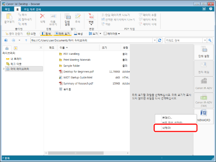 Desktop Browser 화면에서 출력 표시줄에 등록되어 있는 응용 프로그램 출력 버튼을 삭제할 수 있습니다.