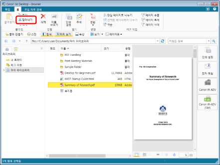 파일 목록 보기 창에서 선택한 문서에 대한 미리 보기 생성 프로세스 중에는 문서를 이동할 수 없습니다.