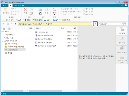 주소 표시줄에 문서 경로를 입력하면 탐색 창에서 문서가 저장된 폴더가 표시됩니다. 파일 목록 보기 창에서 문서를 선택하면 해당 문서와 연결된 응용 프로그램이 시작되고 문서를 표시합니다.