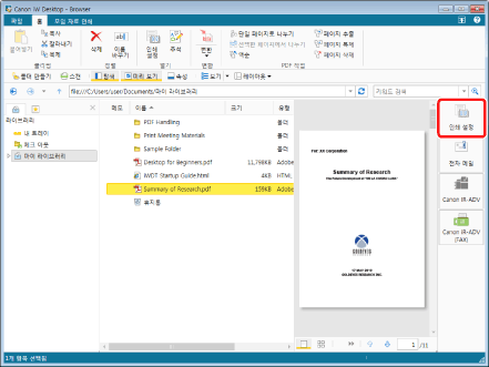 여러 IWB 문서 또는 PDF 문서를 선택하는 경우 리본 메뉴에서