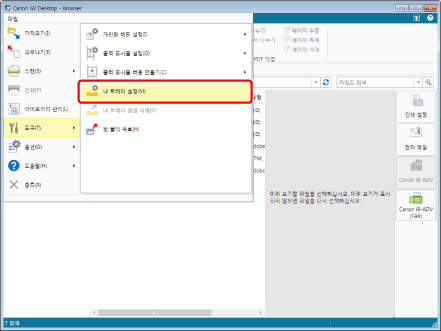 내 트레이로 문서를 전송하도록 수신할 폴더(핫 폴더)로 하나의 폴더만 등록할 수 있습니다. 하지만 대상 폴더는 [핫 폴더 목록] 대화 상자에 표시되지 않습니다.