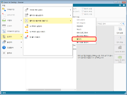 출력 표시줄에 이미 등록되어 있는 대상 폴더는 표시되지 않습니다.