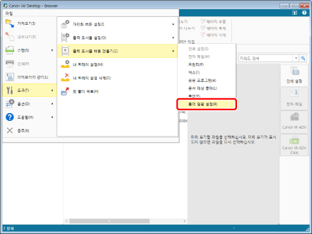 또한 출력 표시줄에 등록된 대상 트레이 출력 버튼을 리본 메뉴 또는 도구 모음에 표시할 수 있습니다. 표시에 대한 자세한 내용은 다음을 참조하십시오.