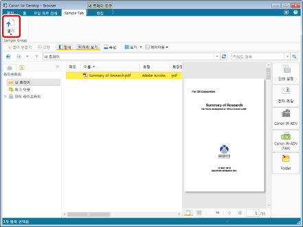 파일 목록 보기 창에서 수신한 문서를 선택합니다.