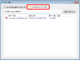 [내 트레이의 문서 로그] 탭을 클릭합니다.