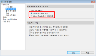 Desktop Browser가 PDF 문서와 연결된 응용 프로그램을 검색할 수 없는 경우 [응용 프로그램 우선 순위 지정]이 표시됩니다.