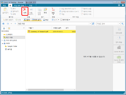 체크 아웃 폴더에서 모든 문서를 삭제하려면 리본 메뉴에서