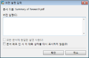 Document Server 라이브러리의 버전 관리 기능을 활성화하면 라이브러리에서 문서를 등록 또는 업데이트할 때 [버전 설명 입력] 대화 상자가 표시됩니다.
