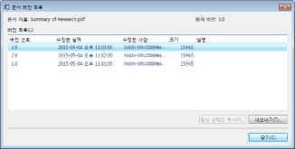 입력한 설명은 [문서 버전 목록] 대화 상자의 버전 정보에서 확인할 수 있습니다.