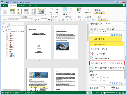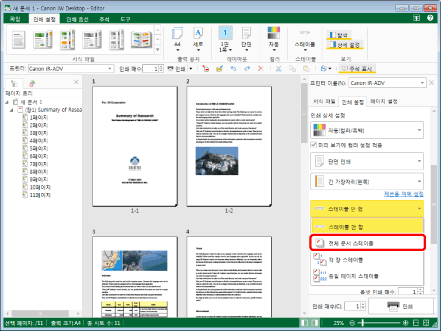 이 기능은 세부사항 창의 Canon 프린터와 세부사항 창의 [인쇄 설정] 탭의 [Editor의 인쇄 설정 사용] 확인란, 리본 메뉴 명령, 도구 버튼을 선택한 경우에만 사용할 수 있습니다.