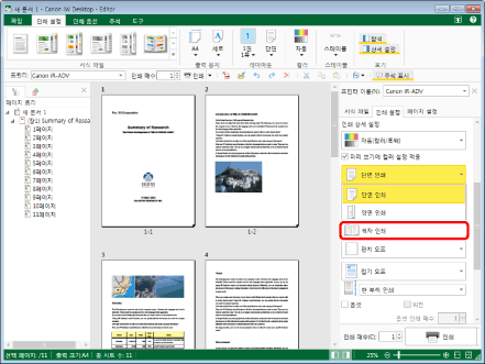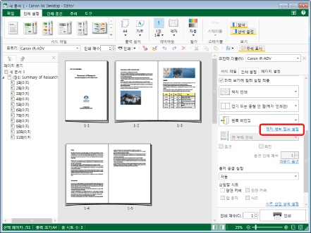 세부사항 창의 [인쇄 설정] 탭에서 지정할 수 있는 항목이 책자 인쇄에 지정할 수 있는 항목으로 전환되고 작업 창이 업데이트됩니다.
