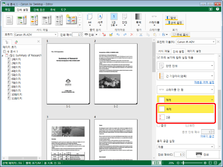 이 기능은 세부사항 창의 Canon 프린터와 세부사항 창의 [인쇄 설정] 탭의 [Editor의 인쇄 설정 사용] 확인란, 리본 메뉴 명령, 도구 버튼을 선택한 경우에만 사용할 수 있습니다.