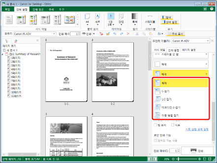 접기 옵션은 [프린터]에서 선택한 프린터에 따라 다릅니다.