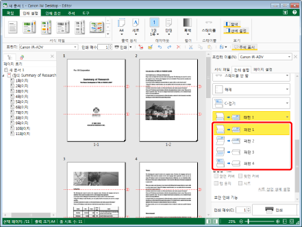 이 기능은 세부사항 창의 Canon 프린터와 세부사항 창의 [인쇄 설정] 탭의 [Editor의 인쇄 설정 사용] 확인란, 리본 메뉴 명령, 도구 버튼을 선택한 경우에만 사용할 수 있습니다.