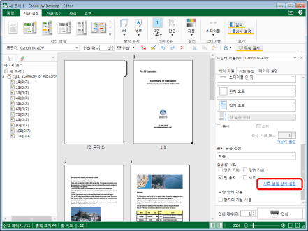 지원되는 용지 종류 옵션은 [프린터]에서 선택한 프린터에 따라 다릅니다.