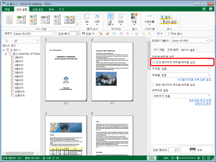 (인쇄본의 머리글/바닥글)를 클릭합니다.
