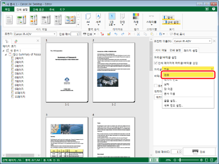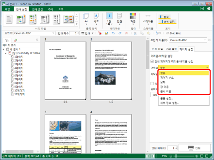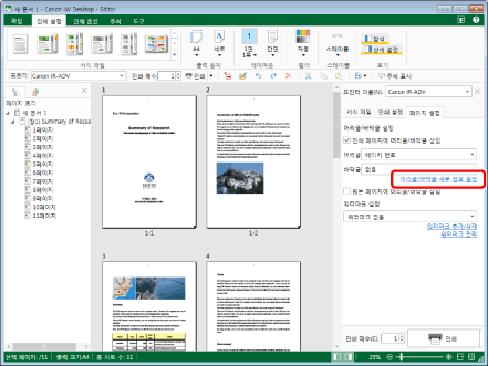 장에 상세 페이지 번호 설정을 지정할 수 있습니다.