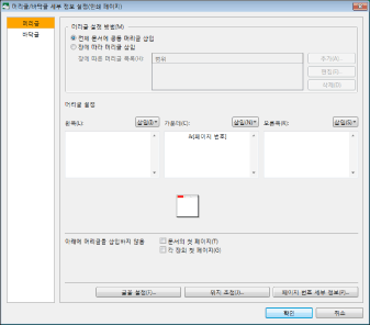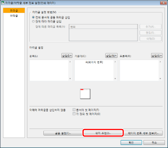 세부사항 창의 [페이지 설정] 탭에서 [머리글/바닥글 설정]의 각 [머리글]/[바닥글]의 풀다운 목록으로부터 [글꼴 설정]을 선택합니다