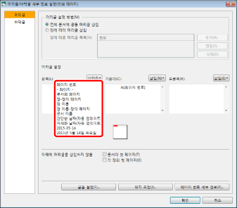 [머리글 설정 방법]에서 선택한 항목이 표시됩니다.