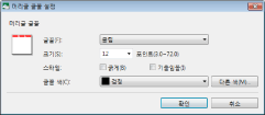사용할 글꼴 크기를 선택합니다. 글꼴 크기를 직접 입력할 수도 있습니다. 구성할 수 있는 글꼴 크기는 3.0 ~ 72.0 포인트 사이입니다. 직접 입력할 경우 두 번째 소수점 이하의 숫자는 생략됩니다.