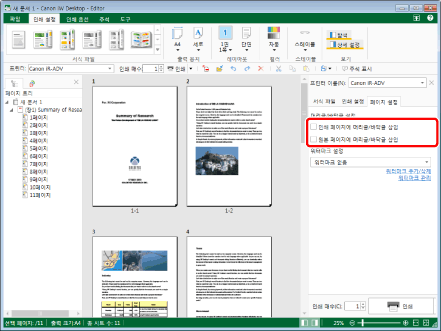 시작 페이지는 [시작 장 번호 지정]을 선택한 경우 입력할 수 있습니다.
