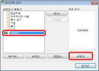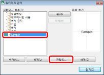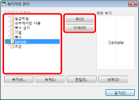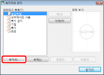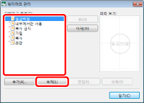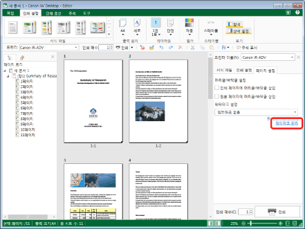 세부사항 창의 [페이지 설정] 탭에서 [워터마크 관리]을 클릭하여 표시되는 [워터마크 관리] 대화 상자