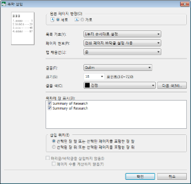 인쇄 페이지의 페이지 번호에 대해 머리글 또는 바닥글 설정을 선택할 수 있습니다.