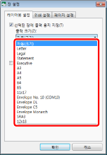 출력 용지 크기로 선택할 수 있는 항목은 [프린터]에서 선택한 프린터의 종류에 따라 다릅니다.