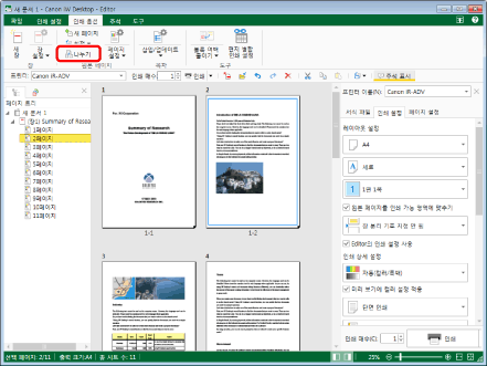 나누어진 페이지를 Desktop Editor을 이용해 편집할 경우 나누어진 페이지에만 편집 결과가 반영됩니다.