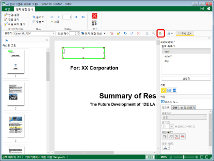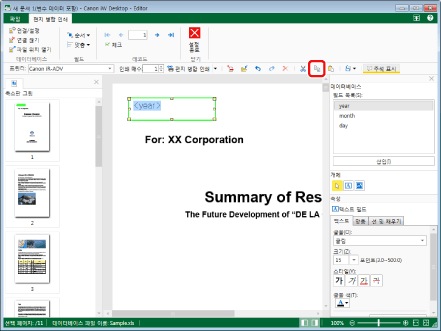 페이지 영역 외부에서 메일 병합 필드를 복사하여 붙여 넣는 경우 붙여 넣는 페이지의 왼쪽 상단에 붙여넣기됩니다.