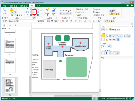 또한 이 작업은 도구 모음의 도구 버튼들을 이용해 수행할 수도 있습니다. Desktop Editor의 도구 모음에 도구 버튼들이 표시되지 않는다면 아래의 방법에 따라 표시할 수 있습니다.