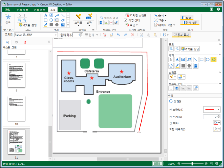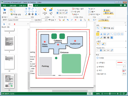 [선 스타일]에서 [구름(작게)] 또는 [구름(크게)]를 선택하면 꼭지점을 이동할 때 주석의 테두리가 실선으로 표시됩니다.